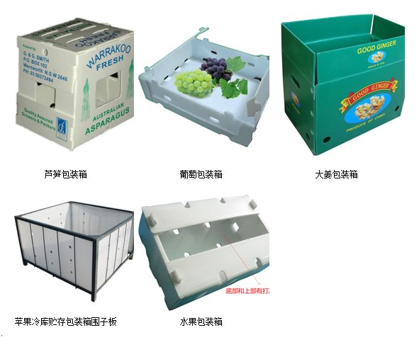 万通塑料中空板包装箱具有优良的耐潮、耐水性、耐低温性、质轻高强、无毒环保可回收可重复使用性等特点已全面替代纸质纸箱。天福乐中空板果蔬包装箱产品:苹果冷库贮存包装箱围子板、大姜包装箱、芦笋包装箱、葡萄包装箱、奶品包装箱、种种包装箱、乳品包装箱等,可满足各类客户的需求。