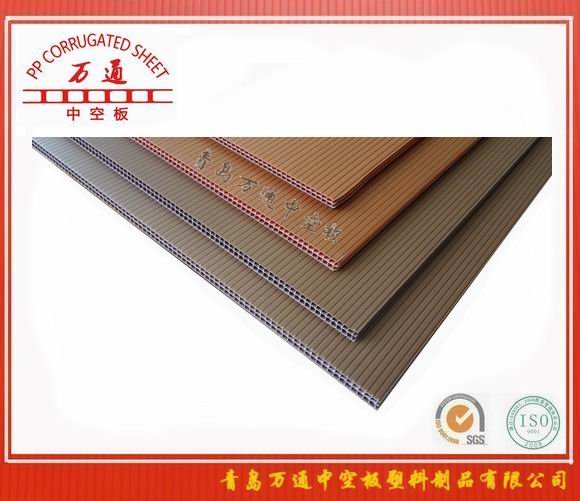 青岛万通中空板塑料制品有限公司生产的PP中空板最大宽度为2600mm厚度2-12mm 中空板, 产品颜色可供选择,长度可根据客户要求任意定制,塑料中空板以其显著的防水防潮、绿色无毒、耐冲击、耐腐蚀、耐油污、可UV抗老化等卓越性能,以及可回收利用的环保特点。广泛应用于中空板展示箱、陈列箱、广告宣传展示板、广告宣传牌、广告背景、广告印刷制品、文具材料、冰箱冰柜的后背板(底托包装)、工业零部件包装、农产品的葡萄、芦笋、大姜、蓝莓、苹果的包装箱等。
